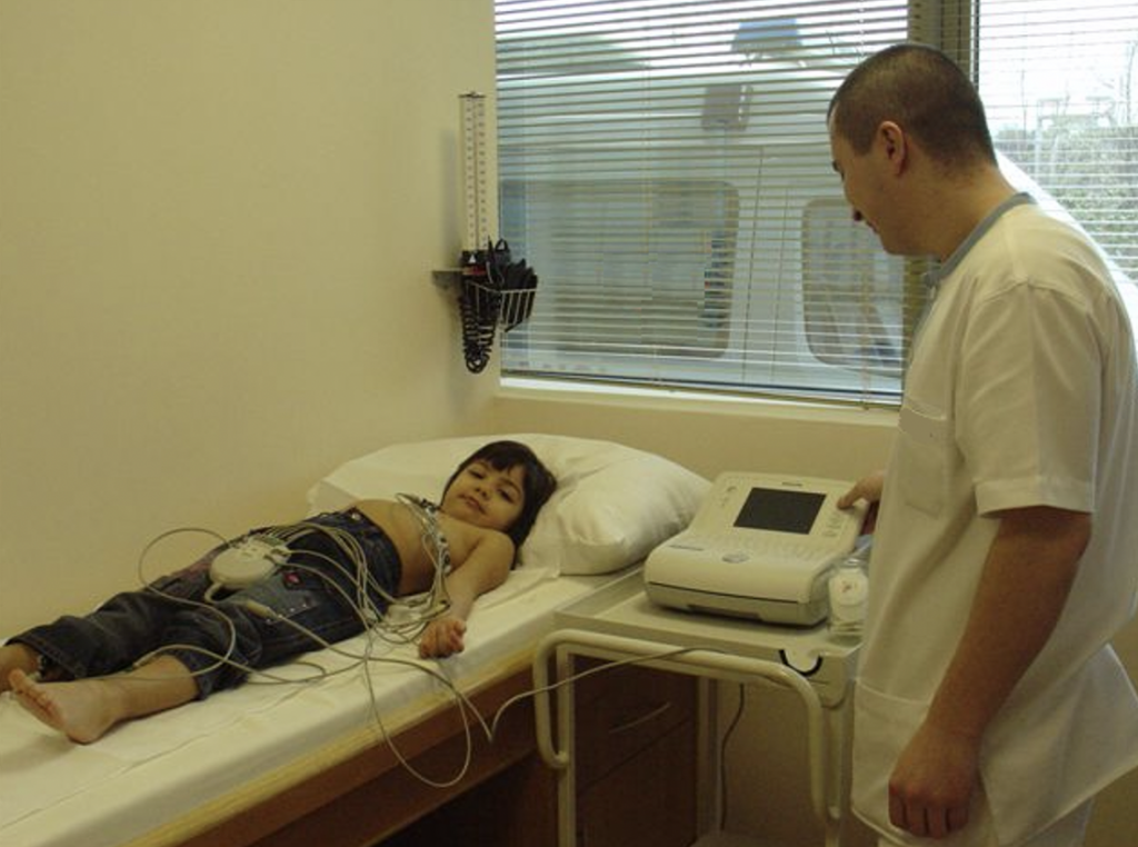ELEKTROKARDİYOGRAM (EKG): Kalbin değerlendirilmesi için kullanılan en hızlı ve basit yöntemlerden biridir. İşlem eğitimli bir teknisyen tarafından yapılır. Çocuğunuzun göğsüne, kollarına ve bacaklarına küçük elektrodlar yapıştırılır. Bu elektrodlar EKG cihazına elektrik kablolarıyla bağlanarak kalbin elektriksel aktivitesini kaydeder. Bu sırada çocuğunuzun sırtüstü ve kımıldamadan yatması gerekir.